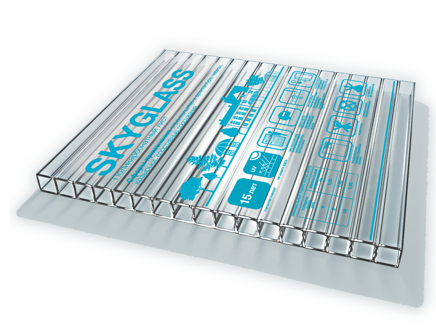 Сотовый поликарбонат( 04 ) SKYGLASS/СКАЙГЛАСС Бесцветный
